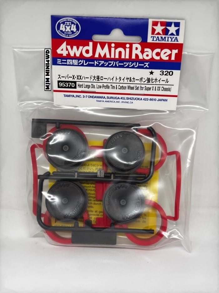 Tamiya 95370 Hard Large Dia. Low Profile Tire(Red) amp; Carbon Wheel Set (for Super X and XX Chassis) Contains 1 set (4pcs red hard tires + 4pcs carbon wheels) large size (large) with full dish carbon model Original Tamiya 100% Free Bubble wrap / cardboard