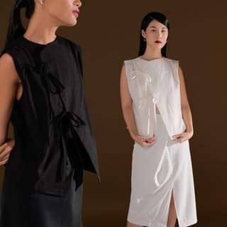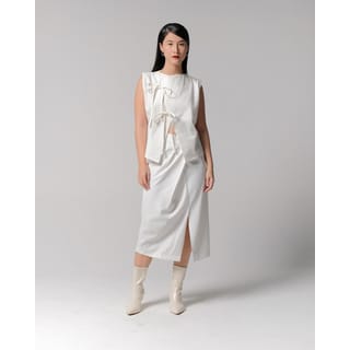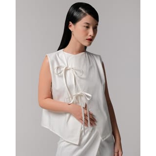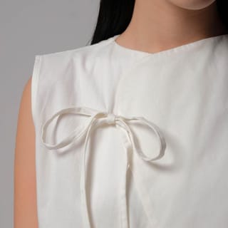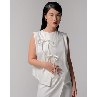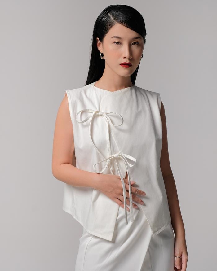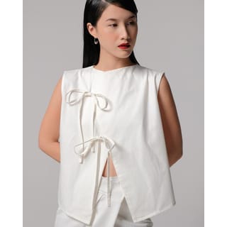 Lara Blouse This artisanal sleeveless top, centering the spotlight of the blouse with ties statement at front. Teaming up with your favorite jeans or your best regular pants. Uniquely meet the different in you stunningly seen among the crowd. - Crafted from cotton. Material : Premium Cotton Bust : 110 cm Length : 58 cm Model is 169