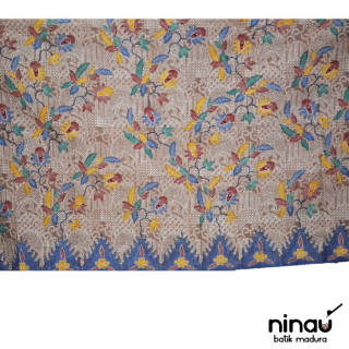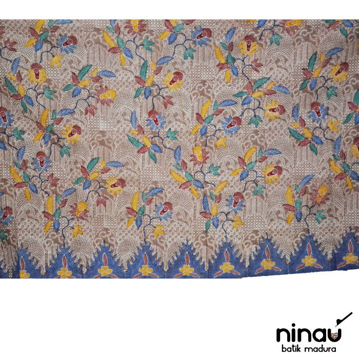 It is a beige Madura written batik fabric Item code: PH-200096 Size: 190 x 110 cm Price: IDR 200,000 Batik Madura Limited Stock! Visit our Instagram on @ninaubatik Reservations can be made through Tokopedia or via the contact listed on our Instagram.