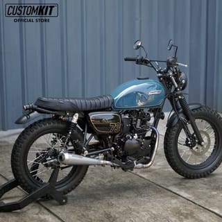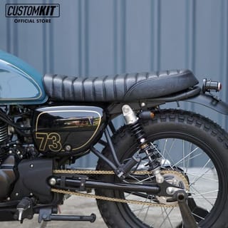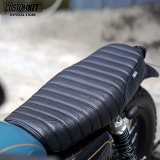 KAWASAKI W175 MODEL TRACKER CUSTOMKIT SEATS - Fibreglass seat mat. - Dark Brown and Black Synthetic Upholstery Leather. - Line Stitch Motif and Wajik. - PnP with W175, only moving the brakes from the old seat. - There is an anti-water seepage coating. - Tracker model seats cannot be used for wasp tails / Hornet Customkit, if there is an error in purchasing goods cannot be exchanged. IMPORTANT NOTES MUST READ: * GOODS IN THE READY STOCK STOREFRONT, PLEASE DIRECTLY ORDER * ORDERS THAT HAVE BEEN ENTERED CANNOT BE CANCELED OR CANCELED FOR ANY REASON, UNLESS THE STOCK RUNS OUT * GOODS THAT HAVE BEEN ORDERED OR PURCHASED CANNOT BE CANCELED OR RETURNED FOR ANY REASON UNLESS THE STOCK RUNS OUT *FOR ANY FORM OF DAMAGE DURING THE SEAT INSTALLATION PROCESS IS BEYOND OUR RESPONSIBILITY. WE RECOMMEND THAT THE INSTALLATION OF THE SEAT BE CARRIED OUT CAREFULLY AND THOROUGHLY. NOTE : complaints are accepted if there is an unboxing video