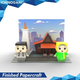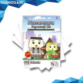 Nusantara Papercraft Kit Provincial Series : NPK-005 DKI Jakarta Series Also raft other NPK series : NPK-001 West Nusa Tenggara Series NPK-002 Bali Series NPK-003 Central Java Series NPK-004 West Java Series NPK-005 DKI Jakarta Series NPK-006 East Kalimantan Series NPK-007 Papua Series NPK-008 South Sulawesi Series NPK-009 North Sumatra Series NPK-010 Special Region Series Yogyakarta Dimensions after assembly : Length 30 cm, Width 21 cm and Height 21 cm. Each package consists of: Traditional House Papercraft, Famous Buildings (landmarks), and Traditional Clothes from each province which can be assembled into a diorama. The series is also enriched with information from each of the assembled papercraft. To assemble it, you have basic instructions for assembling Papercraft and a practice sheet for cutting with scissors or cutters. All you have to do is provide paper glue, because this set has been cut and the folding line is available. In today's technological world, Ichinogami brings Papercraft and the fun to assemble your own toys. We believe Papercraft has good benefits for everyone, from children to adults. For most people, papercraft is a unique experience that is new, can enrich their skills, and can also create interaction with others, both in person and online through their community. We also want to provide quality products by ensuring that all printed papers have eco-friendly certifications and inks that are non-fading, even for more than 5 years on display. Note: If it is assembled and wants to be displayed, place it in a special place such as a glass cabinet amp; Avoid direct sunlight