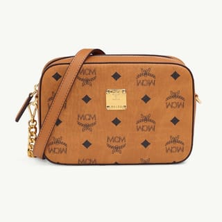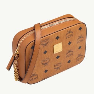 MCM Monogram Camera Chain Shoulder Bag in Cognac