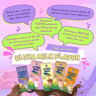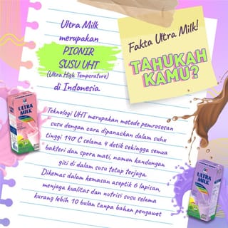 Ultra Milk Strawberry is a quality UHT Milk for Indonesian families. Let's do a good habit of drinking milk every day to start your activities. Note! Not to replace breast milk. Not suitable for babies up to 12 months of age. Shake well before opening. Spend it immediately after opening. Composition: Fresh cow's milk (90%), skim milk powder, sucrose, full cream milk powder, vegetable stabilizer, strawberry synthetic flavor, raspberry synthetic flavor, salt, carmine natural dye (Cl 75470). No preservatives, no artificial sweeteners, no synthetic dyes. BPOM No : 400810018129 No Halal : ID00410000236860321 Packaging Size : 125ml Package Contents: 40pcs (1 carton) *Read labels before buying