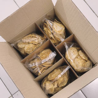 Box of 5 of your favorite tempeh chips! Double wall box Fits: 5 Large Original tempeh chips Box size (cm) : 40 x 34 x 34