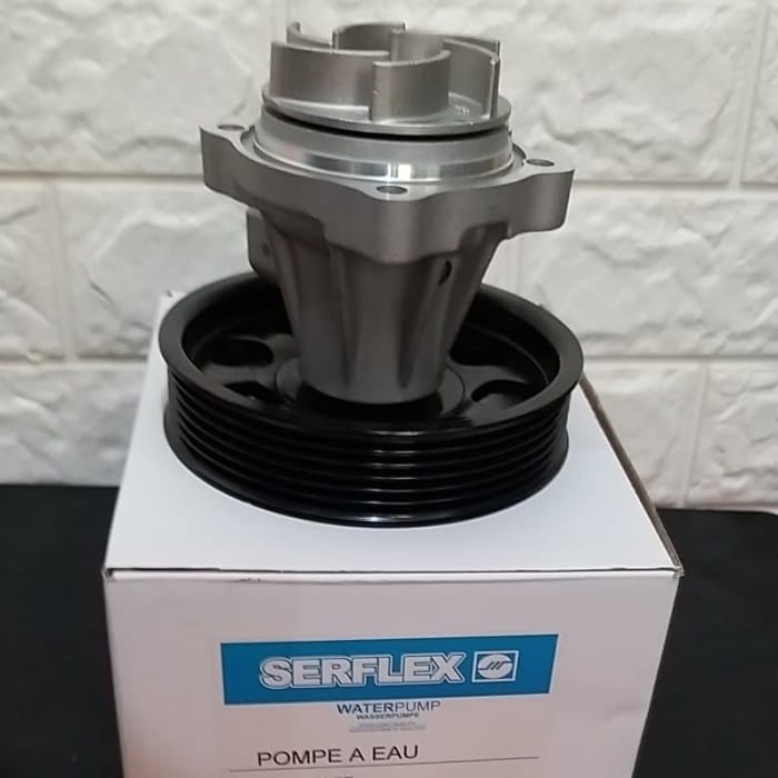 The price of 1 piece of Serflex brand Spin Diesel Waterpump with good quality. Why is the Serflex brand expensive? 1. The material of the wheel is not a plate that is easily porous to rust but Serflex is made of cast iron (babet) shg more durable. 2. The smooth surface of the Waterpump Pulley does not cause the Fanbelt to be damaged quickly.
