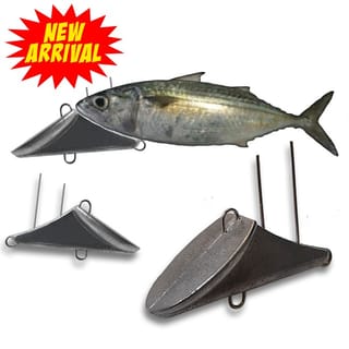 Tin Material + Stainless Wire Weight 150g - Suitable for 15cm long puffy fish bait, can also be used for other types of fish bait, adjust it to the chin - Length of fish mouth holder = 4 cm How to use: 1. Pierce from under the chin of the bait fish 2. Lock the bait with the included rubber 3. The series is ready to be used for trolling and fishing