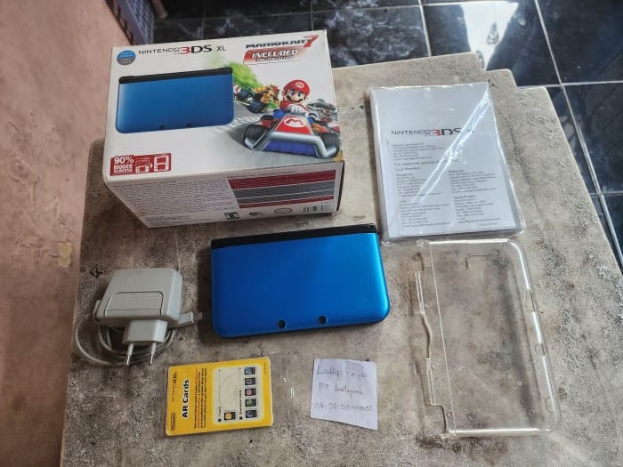 Nintendo 3DS XL Blue Black - CFW Luma Permanent - Free game request - all normal functions - padded msh buttons2 - Built-in Scratch Resistant Top and Bottom Screen - Fairly Smooth Body Completeness: Unit/Console Box (no same series) Stylus Book Manual AR Card Charger SDCard 32GB Case Ready Ask2 via chat / wa 081919440095