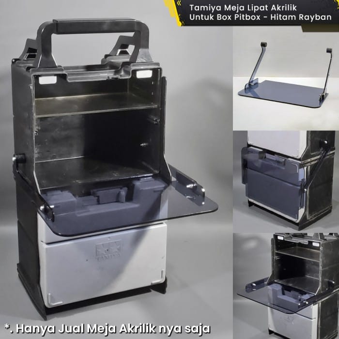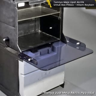 . | WTS | Tamiya Acrylic Folding Table 3mm Black Rayban For Pit Box - Tamiya Portable Pit ** Tamiya Mini 4WD Box ** *. NB: - Box NOT included in the sale - Includes Bolts, Washers and Lock Nuts - When using this table, the bottom acrylic partition cannot be used *. Detail: - Rayban Black - Acrylic Thickness 3mm - Bolts included - Made of Acrylic material - Especially for Tamiya Pitbox / Portable Pit Box - Foldable and very useful when used on the Tamiya Mini 4WD track Pitbox Table - Tamiya Portable Acrylic Folding Table Pitbox - Rayban Black Table Pit Box .