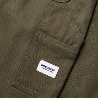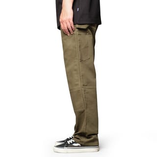 - DOUBLE KNEE PANTS - RELAXED FIT - MISCHIEF ARCUATE ON BACK POCKET - DOUBLE LAYER KNEES - MULTIPLE TOOL POCKETS - HAMMER LOOP - ZIPPER FLY CLOSURE - NON STRETCH FABRIC - 12OZ WEIGHT - COLOR: OLIVE - MATERIAL: CANVAS