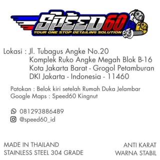 Brand : King Nut Product : Full Set of Pcx Bolts (Photo as illustration only) Type: ADV Quantity : Full Set ADV (Standard) Color : Gold, Blue, Silver. DO YOU WANT TO DETAIL THE DETAILS? SPEED60 the solution! Why Speed60 ? 1. Speed60 is the most complete provider of Probolt online. 2. The first supplier of the King Nut Thai brand in Indonesia. 3. The material used for Probolt Bolts is made of Grade 304 Stainless Steel instead of iron or cnc. (Be careful circulating Probolt iron with a skewed price). 4. Speed60 sells 100% Original Probolt Bolts from Thailand. 5. Strong material, anti-rust, shiny and stable color. 6. Serve and give the best just for you! Happy Shopping! If you have any questions, please ask us directly. Thank you! :)