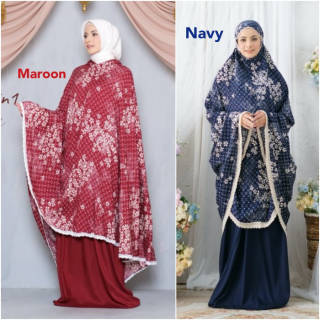 Mukena Adult ARUNA cotton Rayon 2in1 Traveling sakura khadijah Travel - Maroon