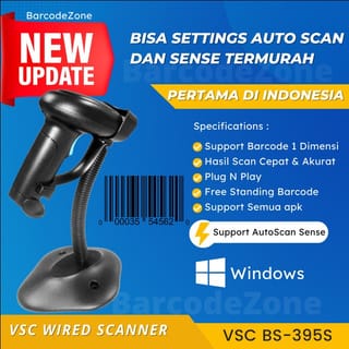 THE CHEAPEST GUARANTEE PROMO PRICE ************* Notes : LATEST TYPE BS-395A SAME FUNCTIONS AND SPECIFICATIONS OFFICIAL WARRANTY NEW & READY STOCK ( Order in - Direct Ship (FAST RESPONSE)) For deliveries around Jakarta, you can send it with Go-Send (max weight 7Kg) cheaper cost only 15k :). ORIGINAL WEIGHT WITHOUT ADDITION +++++++++++++++++++++++++++++++++++++++++++++++++++++++++++ VSC-1000 USB (1D barcode scanner for retail stores, minimarkets and supermarkets) Ergonomic, robust design With multiple interface design (KB wedge, RS232 and USB (HID) interface Visible Laser Diode 670m Excellent Reading Performance is from 10cm to 70cm (PCS: 90% Code 39) High Resolution Reading Capability is up to 0.10mm(4 mil) Support Auto-sensing Drop Test Approved by 1.5M drop Specification Descriptions Scan Speed: 100 Scans/sec. with Auto-sensing Light Source: Visible Laser Diode 670+-10nm Resolution: 0.10mm (4mil) PCS value 45% or more Skew Angle 45 Pitch Angle 60 Scan Distance (PCS 90% code 39) 10-70cm (PCS 90%) Host Systems Interface: USB (HID) interface Manner of scan starting Manual sensor scan Manner of using Portable or setting in bracket Decodable Capability: Code 39, Full ASCII Code 39, Code 32, Code 128, Code 93, Code 11, Codabar/NW7, All UPC/EAN/JAN code (EAN-13, EAN-8, UPC-A, UPC-E, EAN-128), Interleave 2 of 5, STD 2 of 5, Industrial 2 of 5, matrix 2 of 5, Chinese Postage Code, IATA, MSI/PLESSY, Italian Pharmacy Code, Telepen. Option decodable: RSS-14, RSS Limited, RSS Expanded Electrical Voltage: 5V DC 5% Operation Current: 180mA Stand-by Current: 70mA 1 Year Warranty MY SHOP : Barcode Zone Harco Mangga Dua Plaza Blok A 1st Floor No. 51 Central Jakarta HP/ WA : 08170711888 Email :barcodezonecenter@gmailcom