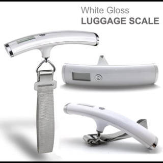White Gloss Stylish Digital Luggage Scale Digital Luggage Scale With Blue LED Light --------------------- No need to unload your luggage at check-in, because your luggage is overweight. With this digital luggage scale, which is very practical to carry anywhere, you can weigh it first when packing. Capacity : 50 KG Battery includes 1x CR2032 . (for FREE batteries can be from the factory not from us, if there is a problem with the battery, please the buyer can replace it with his own battery)