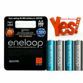 Welcome & shop at YesMart. Click "Follow" to stay up to date with price updates and new products from us. Sanyo Eneloop Glitter 4pc Battery AA Rechargeable Pack Size AA Packing contents 4 pcs/pack Recharge up to 1500 times Capacity 1900 mAh Depreciation is only 25% after storage in 3 years Important Before Ordering : * For shipping outside Java, you must use the fast * No warranty due to packing seal from factory * If there is damage due to the shipping process, we are not responsible because before sending it is physically checked & packed safely. * Buying Means Already Reading & Agreeing