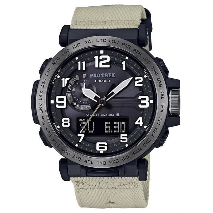 Description CASIO PROTREK PRG-600 ORIGINAL BM STRAP CANVAS AUTOLIGHT WATCH Brand : casio protrek Quality : ori bm Diameter : 4.7cm Movement : battery Strap : canvas Water resist Autolight, Compas Active Temperature etc Gender : male Plus : Box ori