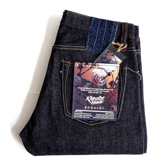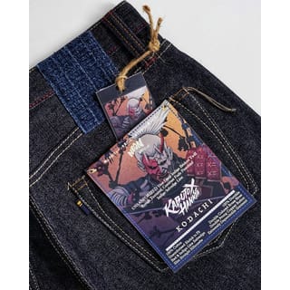 KODACHI specification: + Deep Indigo Broken Twill 16oz Medium-to-Heavy Weight + Rough amp; Rigid Textured + Unsanforized, shrink-to-fit + Indigo Selvedge Line + Slim Straight Silhouette + Hand-sewn SASHIKO Patch + 100% Cotton, 100% Selvedge, 100% Shuttle Loomed + 100% Hand Process, 100% Artisanal Jeans + Poly Cotton Heavy Thread (super strong thread) + Double Selvedge Peek-a-Boo Coin Pocket + YKK Japanese 100% Copper Silver amp; Black Double Prong Button Fly + NBDN Silver amp; Copper Rivets + Hidden Rivets on Backpocket + Continuous N Stitching on Waist Band + Raised Belt Loop + Raised Open Backpocket + Fully Reinforced Backpocket + Triangle Stitch Overlap Details on Left Side Backpocket + Chainstitch Run-Off on Backpocket + Single Felled Inseam + Hemming by Union Special 43200G