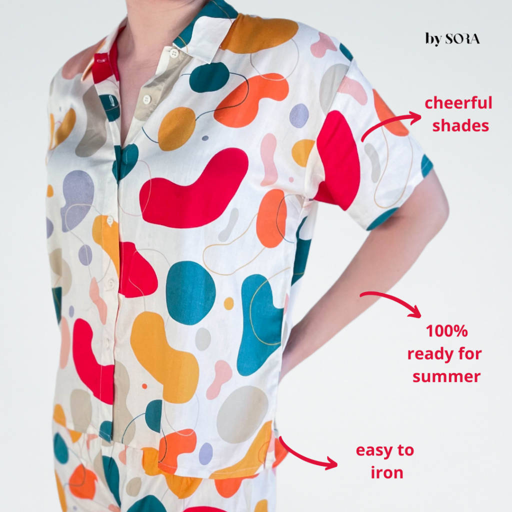 Premium Pajamas, localy produced Material: Premium Rayon, soft, cooling, and easy to iron Size: All Size, fit to L Bust: 112 cm Waist: 60 - 100 cm Pants length: 32 - 33 cm crotch length: 26 - 28 cm