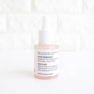 In Brightly Ever After Serum, there is a content of Phyto Whitening, Glutathione, Vitamin C, Niacinamide and Lavender Water which are useful as: 1. Helps brighten the skin and fade blemishes on the face such as hyperpigmentation, acne scars, spots and scars. 2. Helps control excess oil levels in the skin, helps shrink pores, improvise skin tone, smooth wrinkles and lines on the skin. 3. Helps nourish and moisturize the skin. 4. Helps make the skin more relaxed and calm. 5. Works as an antioxidant and also as an anti-pollution. - How to Use: Drop 2-3 drops of serum, rub and massage gently until evenly distributed on the skin of the face. Let it sit for a while to allow the serum to penetrate into the skin.