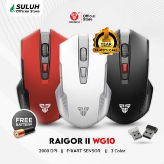Welcome to Suluh Official Store PLEASE CHAT MIMIN IN ADVANCE FOR STOCK AVAILABILITY PLEASE NOTE DON'T FORGET TO VIDEO IT WHEN UNBOXING, AND DON'T BE CUT TO THE WARRANTY CLAIM PROCESS WARRANTY CLAIM CONDITIONS For LAPTOP units, please check them first in their entirety before the activation of the OHS / after the OHS is active for the warranty of exchange of the forged shop unit If there is factory damage within 2 x 24 hours after the item is received, we replace NEW with postage borne by the Store / Marketplace If there is factory damage within 7 x 24 hours after the goods are received, we replace NEW with postage borne by the Buyer Fantech WG10 | Wireless Gaming Mouse Fantech Care 1 Year Official Warranty Specifications: Sensor : PixArt Gaming Optical On-the-fly Adjustable DPI 800-2,000DPI Huano 5,000,000 Clicks Lifetime Battery: 1 AA batteries Voltage: 2.1v-3.6v Silicon Rubber Roller Wireless distance: 10M Ergonomic Both Handed Design Dimension: 114mm x 70mm x 38mm Weight : 80 gr Switch Power : on/off Auto idle off (if not used for more than 5 minutes) With a gaming sensor from PIXART which is known for its low-power that makes the mouse more durable and with the ability of 10g Acceleration and tracking speed up to 30fps You can set the DPI Mouse starting from 800-1600-2000.