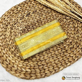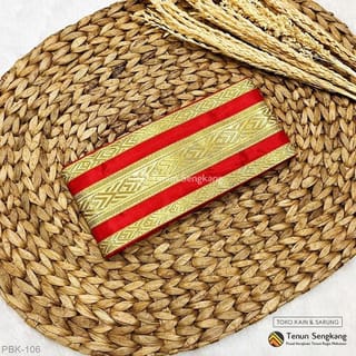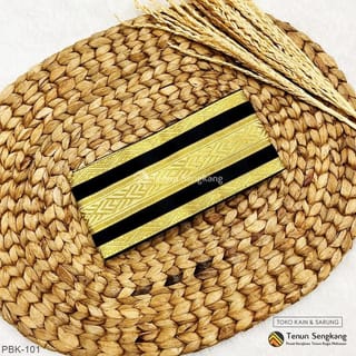 Pabbekkeng Belt Clothing Traditional Clothing Bugis Men Makassar Line Series - Weaving Sengkang PBK-1 HOW TO PURCHASE: - The price listed is the price of 1 pcs product - Shop directly in our offline store for different prices and promos, or cheaper *** HOW TO USE: - The belt belt, which in Bugis language is called "Pabbekkeng" is one of the important accessories when using the traditional clothing of a closed suit, Bugis sarong, and Bugis songkok that is installed around the outside of the sarong's roll on the abdomen. And finally tightened using a pin - It is recommended to choose a variant of the motif and color series that matches the traditional clothing, suit, cover and/or songkok bugis used. Example: if the coat of the cap is black then you can choose black-gold or black-silver *** PRODUCT SPECIFICATIONS: - Pattern series: Stripes - Size: length 130 cm (1.3 meters), width 10 cm - Color : choose a color variant - Bonus: 1 pcs pin (while stocks last) - Capacity & weight: 80 grams (0.080 kg) per pcs - Packaging: plastic (for shipping safety, please order separate box products)