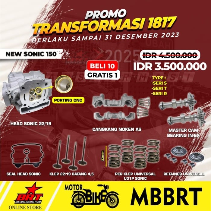 PACKAGE HEAD BRT SONIC NEW CBR 150 CB 150R SUPRA GTR 22 19 24 22 PORTING