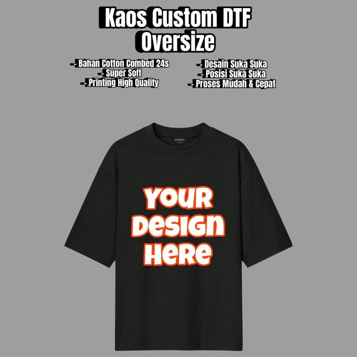 * NOTE * Before Ordering, Please Chat to Our ADMIN First For Image CONSULTATION Printing Process -+4-5 Days Design Likes DTF SCREEN PRINTING PICTURE T-SHIRT Custom Size A6 : 10x13.8 cm ( commonly used for logo ) A5 : 13.8x20 cm A4 : 20x28 cm A3 : 28x40 cm A2 : 38x58 cm Custom T-shirt Colors -Black -White - Navy -Maroon -Grey - Dark Grey - Sage Green - Army Green -Almond - Dusty Pink - Pink Salem - Ivory White - OTHER COLORS CHAT ADMIN Position the image according to the customer according to your request Fitting : T-shirt Oversize SUPER SOFT COTTON COMBED 24s * Neat stitching * The fabric is soft and not rough * Strong and Not Easy to Tear * Easy to absorb water * Hairless * Comfortable to wear and not hot Size (Unisex) : Chest Width x Shirt Length M 53 cm x 68 cm L 55 cm x 70 cm XL 58 cm x 72 cm XXL 62 cm x 74 cm 📌HOW TO ORDER CUSTOM 1. Send a sample design in the chat 2. Admin will give you how to checkout & must follow 3. Checkout as instructed 4. Reconfirm if you have checked out 📌Design format: 1. PNG without high-resolution / non-shattering background 2. Coreldraw/PSD/EPS 📌Notes: * Screen printing is made according to the file sent * The design is not a picture of sticking a t-shirt (mockup) / screenshot result * Return warranty if pure fault from us (s&k in product photos) * Void warranty if giving 1/2/3 stars without contacting the admin for discussion first 100% GUARANTEE (s&k on the store banner)!