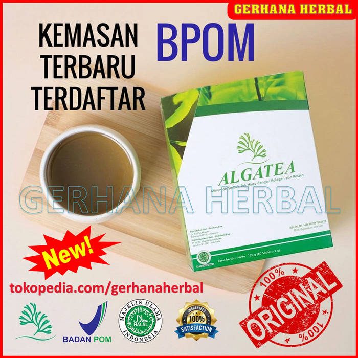 Premium Alga Tea Green Tea Collagen Green Tea Series Collagen Green Tea Original Alga Tea premium combined with halal collagen and selected rosella flowers to support the body to stay in top shape throughout the day. Algae Tea is a health drink to help control free radicals, absorb and remove toxins, and metals from within the body, as a powerful antioxidant. It works well as a complementary nutrient in the treatment of cysts, myomas, endometriosis, keloids, tumors and Cancer. Fiber protein + Algae + green tea antitoxin. As is known, Green tea is known as a strong antioxidant and contains tannins. The combination of tannins + Fiber proteins forms colloids that are beneficial in binding heavy metals and also as powerful antioxidants. In some cases of autoimmune diseases such as tumors, cancer, etc. It is known that the blood of the sufferer contains elements of metals and free radicals. Colloidal Algae Antitoxins work by binding heavy metals and controlling free radicals. Algae Antitoxin is a good drink for those who want to improve the quality of health in cases of Autoimmune, tumors, cancer, auties and abnormal cell growth and all related to abnormalities of the DNA system. Alga Tea is packaged in 1 box with a content of 60 sachets @ 2 g Composition: Rosella Halal Collagen Green Tea