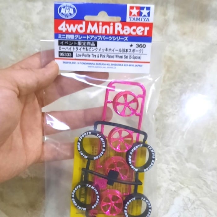 Tamiya 95333 Low Profile Tire & Pink Plated Wheel Set 5Spoke