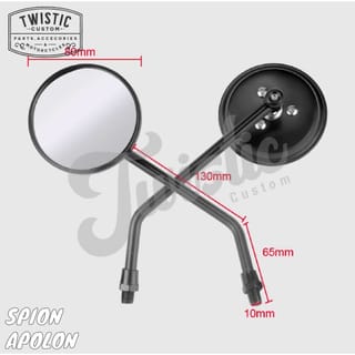 Apolon Imported High Quality Material Motorcycle Mirrors Price above for a pair (right-left) Specifications: - Material: Steel Housing + Steel Bracket Pole + Mirror Glass - Color: Black - Glass Model: Clear and Convex Suitable for all types of custom motorcycles with the concept of Bobber, Chopper, Caferacer, Scrambler, Tracker and Cruiser. Fittings: - 2 pcs Spy - 1 pc L bolt