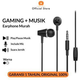 Wuw R75 Headset Earphones Official Warranty / Gaming Earphones / Cheap Earphones / Original Earphones These earphones are ideal for answering phone calls or listening to music. Its light weight makes it great to take with you on a trip. In addition, it is lightweight and comfortable to wear. Phone Conversations with Clear Voice In addition to listening to music, you can use these headset earphones to take phone calls. Simply press the button on the remote in-line to answer or hang up a phone call. 1 Meter Cable The length of the 1 meter cable ensures a comfortable distance between the earphones and your smartphone. Play/Pause Music When you listen to music on Spotify or watch YouTube videos, press the button on the in-line remote on the gaming earphones to use the play/pause function. Press 2 times for the next function or play the next song. Light amp; Comfortable to Use The eartips on these original earphones are dome-shaped so they are comfortable to use for a long time in the ear, besides that the audio output becomes more focused and maximum. Gaming earphones In addition to listening to music or watching movies, these cheap earphones are suitable for gaming. Specifications: - Cable Length: 1 Meter - 3.5 mm Jack - Impedance: 16 Ohm - Sensitivity: 92 db - Frequency Response: 20 - 20000 Hz - Microphone for Phone ====COMPATIBILITY==== All gadgets that have a 3.5 mm audio port. ====FREQUENTLY ASKED QUESTIONS==== Q: Is there a volume control? A: None. Q: Can I receive phone calls? A: Yes.
