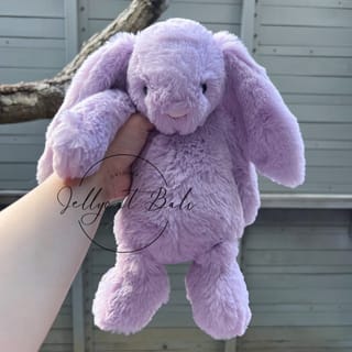 Bashful Lilac Bunny Medium New Original Small 18cm Medium 31cm Large 36cm Huge 51cm Bashful Lilac Bunny is very attentive - she tilts her head to hear all the best tales and readies her yummy-soft purply ears. A delightful lassie in flower-bright fur, she wants to go everywhere, paw in paw. And when she's tired, she'll sit up sweetly, ready for another bedtime story. SAFETY & CARE Tested to and passes the European Safety Standard for toys: EN71 parts 1, 2 & 3, for all ages. Suitable from birth. Hand wash only; do not tumble dry, dry clean or iron. Not recommended to clean in a washing machine. Jellycat's original product is made in Indonesia and is the rest of the export. Buying means agreeing. Please include a video of the unboxing package when you receive it. Thanks