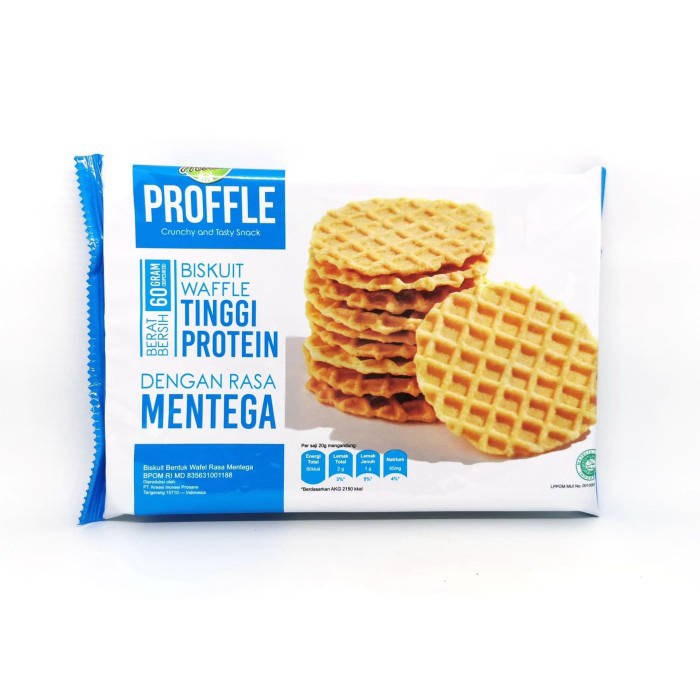 Prosane Proffle is a High Protein Waffle with a high protein content that helps build and repair your body tissues. It is suitable for those of you who are exercising regularly and in a muscle mass formation program. Prosana comes from the word pro and sana, which has the meaning of pro healthy, as evidenced by its products that provide added health value for us. Available in 2 flavors: Butter, and Chocolate #wafer #waffle #snack #snak #cemilan