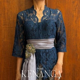 Kebaya Kartini Stretch Suit Kenanga Bell Sleeve - navy, KEBAYA SUIT, S