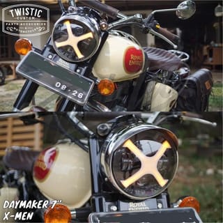 Daymaker 7 inch X MEN LED Lights Motor W175 W250 Ninja SS Megapro Benelli Royal Enfield Hunter Meteor 350 Interceptor 650 Himalayan Scram Scorpio Tiger XSR - White X