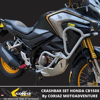 Syndicate Motor Indonesia is one of the largest motorcycle adventure specialist workshops in Indonesia. Goods sold at Syndicate Motor Indonesia have generally passed a series of tests by both our Testers and our CEOs who are very focused on quality and strength. Customer satisfaction and safety are our priority in selling goods. Offline stores definitely exist because our workshop has a clear offline store and our store started offline a long time ago. Crashbar / Engine Guard Honda CB150X By Coriaz Motoadventure This Crashbar is Made with a larger Tankguard Pipe but still lighter and better than the Previous Version. Designed to provide maximum protection to your motorcycle. Protect your adventures with Crashbar Coriaz Motoadventure! Specifications: * Steelpipe 22mm 1.7mm thickness For Engine Guard * Steelpipe 25.4mm 1.7mm Thickness For Tankguard * SPHC standard plate JIS G 3131 * CO2 MIG Welding * Manual Bending pipe * Powder coating sand Finishing Black sand / Silver Sand by Jotun Equipment you get : - 1pc 10mm x 160mm bolt and 2 rubber nut - 2pcs 12mm x 16mm galvanized steel bushing - 2pcs 12mm x 18mm galvanized steel bushing - 4pcs M8 x 55mm all Bolt Steel Galvanized - 10 pcs galvanized washer - 2pcs M8 x 25mm allen bolt steel galvanized - 2pcs M5 x 25mm all bolt steel galvanized Garansi : Lifetime Warranty Lifetime warranty is a lifetime warranty for a Coriaz Motoadventure product attached to the first purchaser according to the name on the invoice and registered on the Coriaz Motoadventure website. Coriaz products covered by the Lifetime Warranty apply to products such as Crashbar and Metalworks produced by Coriaz Motoadventure. The scope of Warranty is in the event of a fracture that occurs in the Welding/welding part either in normal use, competition, or accidental fall or accident. How to activate the Coriaz Motoadventure Lifetime Warranty Product is as follows: 1. New purchases from dealers and resellers registered on the www.coriazmoto.com website 2. Make sure the name listed on the purchase invoice is the same according to the ID Card (Sim/Ktp/Passport) either at the dealer, reseller network or directly to the Coriaz Motoadventure headquarters. 3. Register your warranty in www.coriazmoto.com NOTE: *The warranty does not apply to products that you get from door prizes or discounts. *The warranty does not apply if the structure of an existing Coriaz product is altered or modified by a third party (Welded, subtracted, added, perforated and others). Before buying goods, make sure you understand the goods you are buying because if there is a mistake, type of color etc it is beyond our responsibility. If there are items that do not match the order in color or type, we will notify the customer via PM and it will still be sent when the customer agrees, if not, please please click cancellation. For preOrder items when you have purchased them, you cannot apply for cancellation for any reason. Goods sold at us have been checked and tested before being shipped. For the sake of mutual comfort, it is mandatory to do an unboxing video without a break from the time the goods are opened until it is finished, Without a complete video, it is likely that if there are complaints, we will not respond.*** Happy shopping, follow IG and Youtube @syndicatemoto Offline Shop – google maps "Syndicate Motor Indonesia".