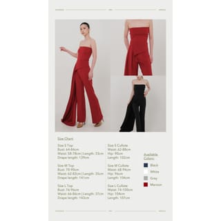 Phoebe Set Colors: Black / White / Grey Price: 99K (Top) | 149K (Culotte) SET PRICE: 239K (top + culotte) Material: Scuba Latex PHOEBE PANTS PLEASE CHECKOUT AT OTHER STOREFRONTS, AUTOMATIC BUNDLE PURCHASE DISCOUNT SIZE CHART Size S: Bust: 64-84cm Waist: 58-78cm Length: 33cm Drape length: 139cm Size M Bust: 70-90cm Waist: 62-82cm Length: 35cm Drape length: 141cm Size L Bust: 76-96cm Waist: 66-86cm Length: 37cm Drape length: 143cm NEED TO READ: Please allow 1-3cm error due to manual measurement. Photo and original color mgkn There will be a slight difference due to the results of camera / cellphone / light photos different. As long as the product can be clicked, it means READYSTOCK. For Reseller / Wholesale / Dropship Direct CTC Admin for Special 😊❤️ Price If there is a shipping error / product damage, please direct contact our Admin for product exchange (Unboxing video required), and If there are any complaints about the product such as small / oversized size, please To contact our admin also for exchange discussions. Most importantly, please do not immediately leave a negative review, because if A negative review has been given, the redemption is invalid. PLEASE CONSULT IN ADVANCE PREVIOUSLY. Thank
