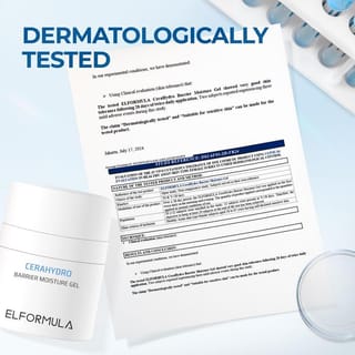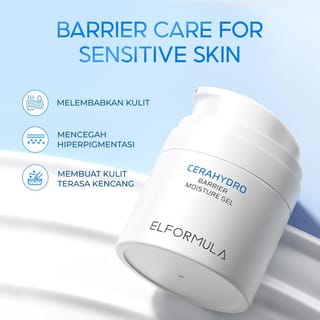ELFORMULA CeraHydro Barrier Moisture Gel NO BPOM NA11220100209 Net 50ml Elformula CeraHydro Barrier Moisture Gel is a moisturizer included in the Elformula Skin Barrier Line range, which is focused on skin barrier treatments using ingredients that are verified to be safe and effective. It contains three main patent ingredients, two of which are CeraHydro (consisting of Water, Lespedeza Capitata Leaf/Stem Extract, Beta Glucan, Ceramide complex) and Ectoin, which helps to maintain the skin barrier and provide calmness to the skin. Equipped with an anti-blue light agent to protect against exposure to the rays of electronic devices. Benefits : Helps improve the skin barrier As a water barrier on the skin for optimal hydration Helps maintain the skin's natural skin barrier Helps strengthen the skin barrier Helps improve skin elasticity Helps improve skin texture Helps improve skin immune function Provides a calming effect on the skin Helps reduce skin irritation/inflammation Creates a natural layer to prevent excess water evaporation on the skin Helps protect the skin from pollution How to Use : After using Elformula Barrier Essence and Elformula Barrier Serum, apply Elformula Barrier Moisture Gel evenly and evenly to the entire face and neck. Then, use Elformula Barrier Sunscreen afterwards in the morning. Use twice a day, morning and night for best results