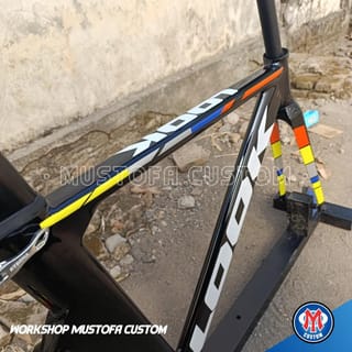 Hiten Steel Material Size can be requested Color can be requested. 700c Wheels ( Can Request ) Seat post 27.2 Headtube 44mm Mustofa Custom Workshop Accepts orders of all kinds of bicycle frames, geometry, shapes and colors can be requested according to request.