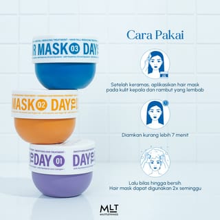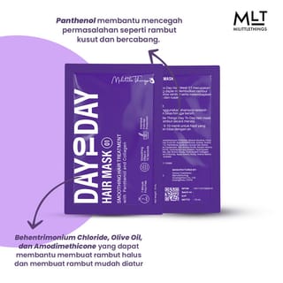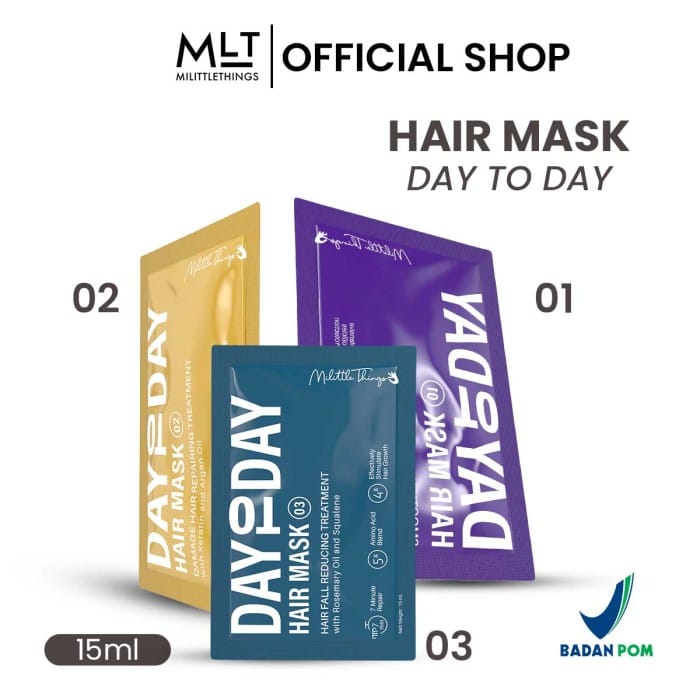 Milittle Things Day To Day Hair Mask is very necessary for those of you who have hair loss, split ends, or other hair damage, especially caused by the use of styling tools or hair dye. This hair mask consists of 3 variants, namely: Milittle Things Day To Day Hair Mask 01 : Smoothing Hair Treatment Milittle Things Day To Day Hair Mask 02 : Damage Hair Repairing Treatment Milittle Things Day To Day Hair Mask 03 : Hair fall Reducing Treatment