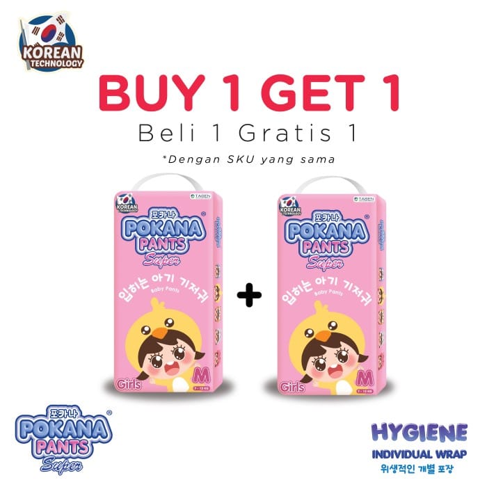 Description of POKANA PANTS SUPER Girls Pokana Super is the first diaper in the world with its own packaging on each diaper so that it is hygienic from bacteria and air pollution. This pants-shaped diaper is made with Korean Technology Pokana Super has an excellent feature, namely anti-bacterial raw materials to keep it hygienic and not cause irritation to the baby's skin. There is an ADL Magic Layer that functions so that the liquid is distributed quickly and evenly so that the surface remains dry. Pokana Super has a different front and back design in each size so that this diaper looks even more attractive with its Pink color for Girls. This Super Pokana is made of clinically tested ingredients so that it feels comfortable and soft on the baby's skin. Designed in such a way as not to irritate your little one's skin, this diaper also has air circulation so that the baby's skin remains dry and not damp. Your little one will always feel comfortable. Practical for traveling because the packaging can be used again to dispose of used diapers. This Super Pokana is safe if exposed to milk / water spills because each diaper is packaged one by one. Pokana Super has also been certified halal. Weight Range M32 7 - 12 kg L26 9 - 14 kg XL22 12 - 17 kg XXL20 15 - 25 kg