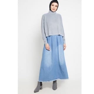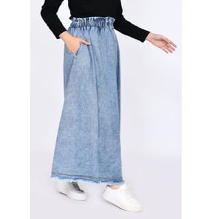 WOMEN'S MUSLIM SKIRT - ZAHRA SIGNATURE - Long Skirt Denim Raw Cut - Light Blue