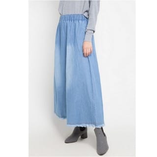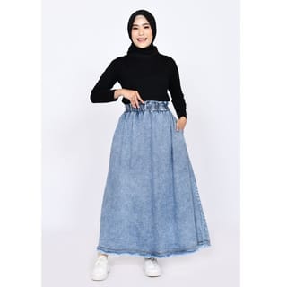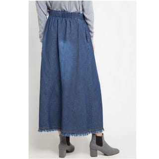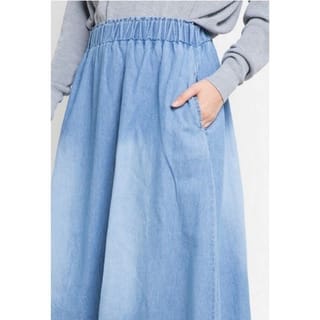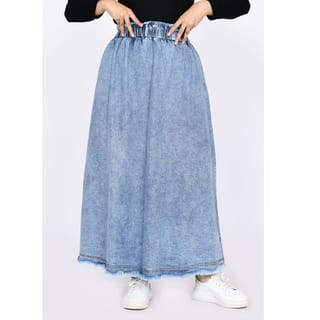 - Washed detail maxi skirt for daily look - Light blue and dark blue - Mid rise - Regular fit - Elastic waistband - 2 side pockets - Denim material is non-transparent, medium thickness, and does not stretch INFORMATION: Waist Circumference : 60-96 cm Hip Circumference : 136 cm Product Length : 88 cm