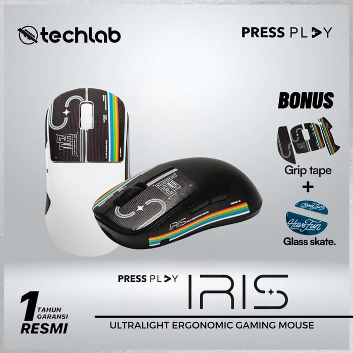 IMPORTANT NOTES : Please add extra bubble wrap packing if you want the product and box to be safer, we have given 1 layer of bubble wrap to the default packing. If you want more than 1 layer please order bubble wrap: https://www.tokopedia.com/gadgetcomputerrr/bubble-wrap-for-extra-packing-techlab-extra-packing-bubble-wrapping-tech-lab IRIS Ultralight Ergonomic Wireless Gaming Mouse Please record the unboxing video without cut, pause or edit before filing a complaint of damage or lack of goods. We do not serve complaints without video evidence of unboxing. ATTENTION: Do not charge to a power source other than the USB port of the PC/laptop. Never charge directly to a power outlet. If you charge using another cable, cellphone adapter, and/or directly to an outlet or something like that, the warranty will be void. FREE GRIP TAPE + EXTRA MOUSE FEET. IRIS Ultralight Wireless Gaming Mouse Specs and Features: - Dimensions: 120.4 x 63.8 x 37.4mm - Weight: 52gr - Pixart PAW3395 sensor - 650IPS, 50g acceleration - DPI up to 26000 - 1000Hz Polling Rate (customizable, can be lowered to save battery) - Customizable Debounce Rate - Customizable Lift-off Distance - Huano Blue Shell Pink Dot switch, withstand 80 million clicks - TTC Silver encoder - 2.4GHz connection dongle - 7 button mouse (2 click, 1 middle click, 2 side buttons, 1 DPI button) + 1 power switch - Customizable with official software - Battery capacity: 300mAh - wired and wireless connectivity - 1.95m long cable included (for charging + USB connectivity) - grip tape + spare PTFE feet included ATTENTION: If the mouse is stuttering during wireless mode, check if there are other wireless devices near your computer (e.g. wireless dongles of other devices, internet routers, etc.) that can interfere with the mouse connection. If the stuttler still occurs even in wired mode, please contact us via chat. It is strongly discouraged to use cables other than those available 6+6 month limited warranty must be registered within 7 days of receipt of goods, full instructions are on our website.