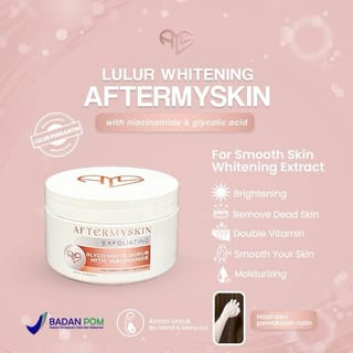 (There is 1 item in 1 package) + 1 soap ✨ AFTERMYSKIN✨ WHITENING SCRUB With Niacinamide & Glycolic Acid 250ml NA18250702748 Aftermyskin whitening scrub is a premium body scrub that is specially formulated to help lighten, smooth, and care for the skin optimally. Enriched with Niacinamide and Glycolic Acid, this scrub works effectively to remove dead skin cells while helping to even out skin tone to look brighter and healthier. The texture of the scrub is soft so it is comfortable to use regularly without making the skin dry. Its active ingredients help improve skin texture, disguise dullness, and make the skin feel smoother, moisturized, and glowing. 💖 Key Benefits: Helps brighten and even out skin tone Gently removes dead skin cells Leaves skin feeling smoother and moisturized Helps reduce dull appearance Maintain a healthy skin barrier 🧴 Featured Contents: Niacinamide: Helps brighten, moisturize, and strengthen the skin barrier Glycolic Acid: Gentle exfoliation for cleaner and brighter skin 🫧 How to use: Mix 1 250ml scrub + 1 aftermyskin soap (grated soap) for bleaching, use every day before showering, let it sit for 2-5 minutes and then rinse, after that you can use soap again or not. Mix 1 250ml scrub + 1/2 aftermyskin soap (grated soap) for exfoliation, used 1-2x a week. Usaplan scrub all over the body before bathing, let it sit for 2-5 minutes and then rub until dead skin cells are lifted. ✨ Suitable for regular use to get brighter, smoother, and well-groomed body skin. ! MANDATORY VIDEO UNBOXING! It is mandatory to attach a video of the opening of the package, from the beginning to the end without interruption & without editing. ! WITHOUT THE UNBOXING VIDEO, WE HAVE THE RIGHT TO REFUSE THE COMPLAINT!