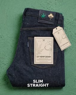 FIT : SLIM STRAIGHT – Medium Rise FABRIC : 23oz Hemp Denim – 60% Cotton x 40% Hemp (Cannabis Sativa Fiber) – Deep Indigo Rope Dyed Warp – Unsanforized – Hidden Arcuate + Green Arcuate – Herringbone Pocket Lining – Double Prong Button On Fly – Branded Cooper Rivet – Special Design 3 Colours Leather Patch – Hidden Rivet – Triple Tone Stitching – Tucked In Beltloop – Chainstitch Hem With Union Special 43200 DENIM DESCRIPTION : The growing awareness of a more responsible lifestyle towards nature, made us want to introduce hemp as an alternative material for making denim. Cannabis Sativa fibers are well-known for having a higher fiber strength than cotton. Naturally hemp has anti-fungal features and can withstand UV rays. We use 60% cotton and 40% hemp yarn woven using vintage shuttle looms that produce 23oz selvedge denim. Rope-dyed pean is used to achieve such dark indigo. To maintain a natural and hairy surface of the fabric, we leave the denim in an unsanforized state. CARE GUIDE: Perform an initial soak before use. Wear your jeans as often as possible and wash them only when necessary. Wash by hand, or soak in cold water with a small amount of detergent. It is enough to be dried by hanging.