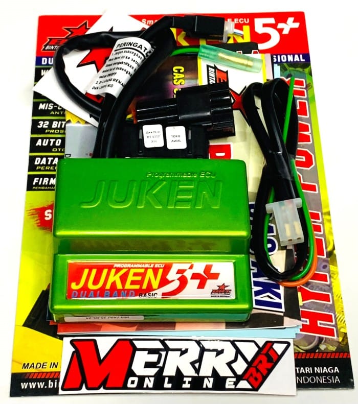 ECU Juken Type: -- for GSX juken 5 basic yellow color -- for Satria FI juken 5++ green color Not include Remote Juken 5 is a 5th generation ECU designed specifically for mechanics/novice users or who are already proficient in using programmable ECUs. The Juken 5 is very easy to use for daily use or for racing modifications. Juken 5 can be set in the condition that the machine is running either using a laptop or using a remote programmer. For beginners, there is no need to be afraid to learn injection settings with JUKEN 5, because it is equipped with a FACTORY RESET feature, so that if something goes wrong, it can be restored to its original condition. The JUKEN 5 application software is highly interactive and easy to use for both beginner and expert mechanics. FEATURE: > Dual Injector Support > Smart Dual i-CORE (DUAL BAND) > Programmable ECU with Remote Programmer > Interactive JUKEN 5 software > LIVE TUNE / Setting in the engine on condition > 3D Graphics Analysis > Base Map Auto Calculation Algorithm > E-map Easy Mapping > Factory RESET (via Remote) > Smart Key compatible (coming soon) Juken 5 ECU Remote Sold separately In it the packaging there are: 1 unit of Racing Turbo type BRT ECU 1 unit of socket + dualband cable (found on racing turbo and dualband types) and can be connected for dualband switch 1 unit of history button + cable (only found on the racing turbo type) and can be connected to the ECU (there is a socket on the ecu) is useful for facilitating mapping readings by recording data when the button is pressed 1 unit of dual injector socket (only found in the racing turbo type) and if you want to use Two injectors Setting the ECU is very easy because the motor can be turned on when setting, can be set through a laptop, the features are very easy and complete