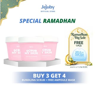 Package contains: 3 pcs - Jejuby Sakura Milk Mask with Scrub - 100g . Sakura Milk Mask with Scrub is a Moderate Body Scrub enriched with 28% Beads to exfoliate dead skin cells and impurities, resulting in softer, brighter, and well-groomed skin. This product is effective in nourishing and brightening the skin and helps to disguise dark spots. . INGREDIENTS Tranexamic Acid (1%) – Helps disguise dark spots and even out skin tone, leaving skin looking brighter and more radiant. Licorice Extract/ Licorice Extract Solution (2%) – Brightens skin and reduces hyperpigmentation, giving skin a more even and clear skin Hydrated Silica - Helps remove dead skin cells without causing irritation. Milk Extract – Moisturizes and nourishes the skin, providing long-lasting softness. Shea Butter - Helps moisturize and soothe irritated skin Vitamin Complex antioxidant blend - helps the performance of active ingredients work more optimally in nourishing the skin (active booster) . HOW TO USE Apply Sakura Milk Mask with Scrub to taste. Massage gently to exfoliate the skin Rinse with water thoroughly. . Minimum age of 10 years Bumil & Busui Approved BPOM NA18250700584