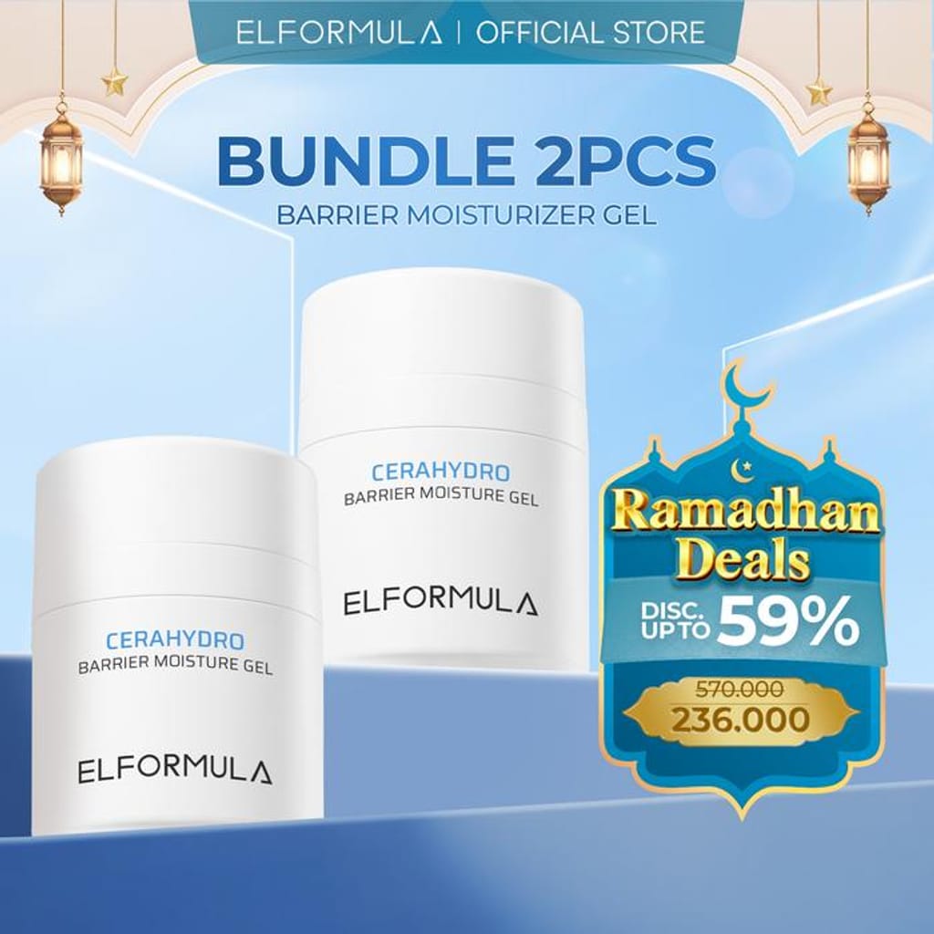 ELFORMULA CeraHydro Barrier Moisture Gel Intensive Barrier Repair and Protection formula No BPOM NA11220100209 Net: 50 ml Elformula CeraHydro Barrier Moisture Gel is a Moisture Gel included in the Elformula Skin Barrier Line series, which is a special skincare line from Elformula with the main focus: Skin Barrier Treatment with ingredients that are verified to be safe and have a real effect on the skin. Using patented ingredients including: CeraHydro (consisting of Water, Lespedeza Capitata Leaf/Stem Extract, Beta Glucan, Ceramide complex) and Supported by 1 ingredient, namely Ceramide Complex to strengthen the skin barrier. Equipped with anti blue light agent for protection against light reflection from electronic objects BENEFITS 1. Improves the skin barrier 2. As a water barrier to the skin for optimal hydration 3. Maintain the skin's natural skin barrier 4. Strengthens the skin barrier 5. Improves skin elasticity 6. Improves skin texture 7. Improves skin immune function 8. Provides a calming effect on the skin 9. Reduces skin irritation/inflammation 10. Creates a natural layer to prevent excess water evaporation on the skin 11. Protects the skin from pollution HOW TO USE After using Elformula Barrier Essence and Elformula Barrier Serum, apply Elformula Barrier Moisture Gel evenly and evenly to the entire face and neck. Then, use Elformula Barrier Sunscreen afterwards in the morning. Use twice a day, morning and night for best results HERO INGREDIENTS 1. CeraHydro 2. Ectoin 3. Plant Extract 4. Ceramide Complex