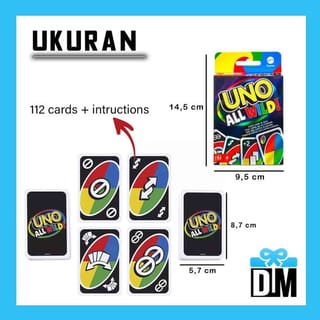 CULTIVATE READING BEFORE BUYING MISUNDERSTANDING BECAUSE THE BUYER DOESN'T READ THE DESCRIPTION= BUYER NEGLIGENCE = NO RETURNS = DBWH REVIEW 3 = BLOCK In the All Wild card game, each wild card is for a quick version, even more unexpected than this family favorite! There's no matching numbers or colors as usual, but it's not as easy as it sounds. Special Action Cards are a game-changer! There are Wild Skip Two cards where players skip two other players instead of the traditional ones, Wild Forced Swap cards where players switch hands and more! This edition is just as addictive as it is exhilarating and makes a great gift for players aged 7 and up. Colors and decorations may vary. There are 2 types of Decks A. One Fusion Wild (120 Wild Cards Combined with Special/Description) Lots of Plot Twists B. Original (112 Wild Cards + Hologram Box Cover) C. KW (112 Wild Cards) All cards can be combined because the back is still similar both in size and color. Be careful with cheap prices, because it is most likely that the goods are shipped with low quality, packing only using plastic without bubble wrap on the outside of the same scale... In contrast to us providing bubble wrap or thick plastic or cardboard (we arrange it) so that the package is safe enough for the West Java + Jabodetabek area. Outside West Java + Jabodetabek Add extra packing Bubble wrap + cardboard so that your package is wrapped with bubble + cardboard even thicker on the way.