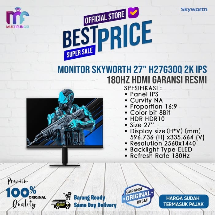 Skyworth 27" H27G30Q 2K IPS 180Hz HDMI Monitor Official Warranty - H27G30Q, NO WOOD